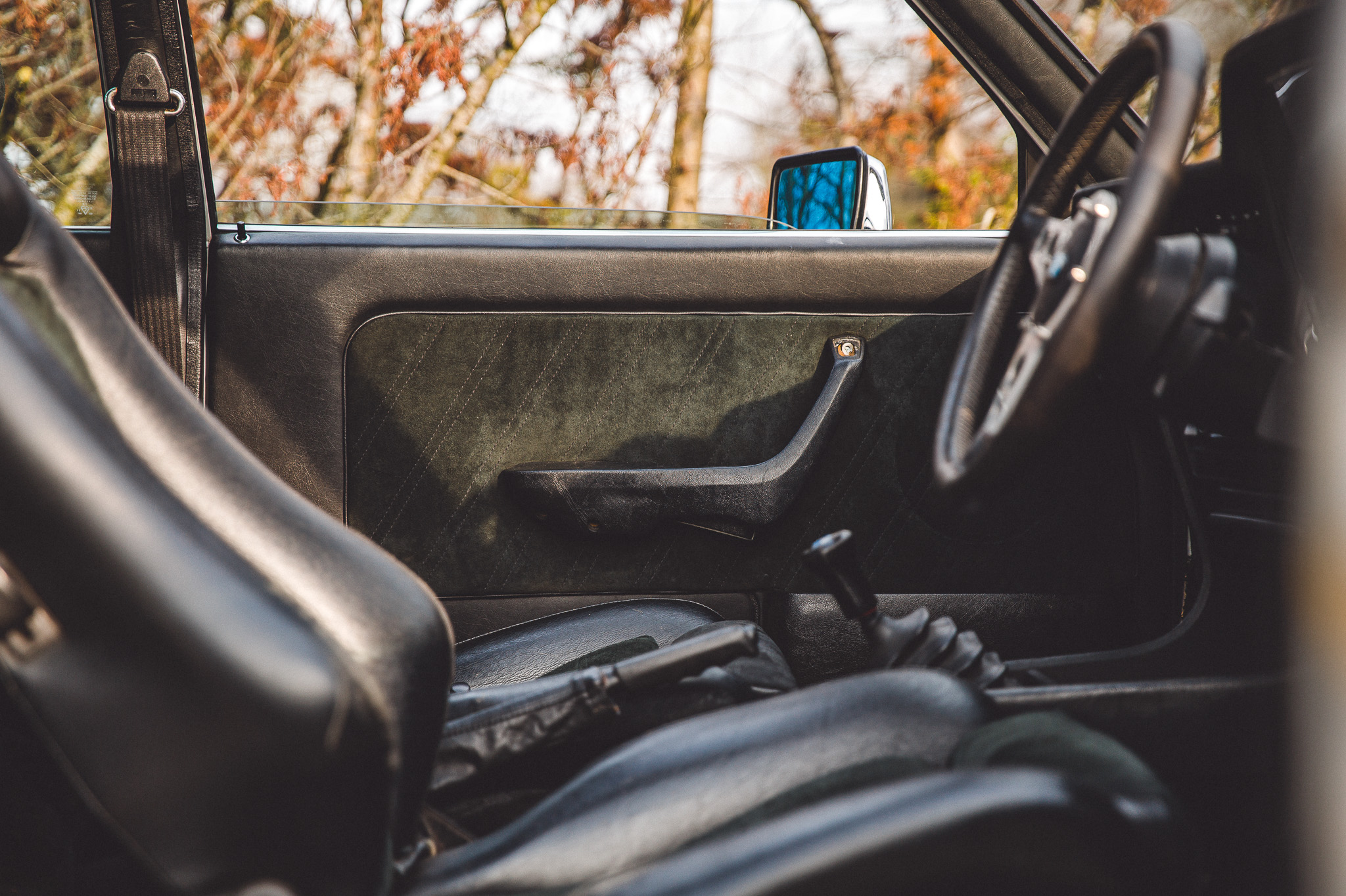 - leather/suede green/black interior