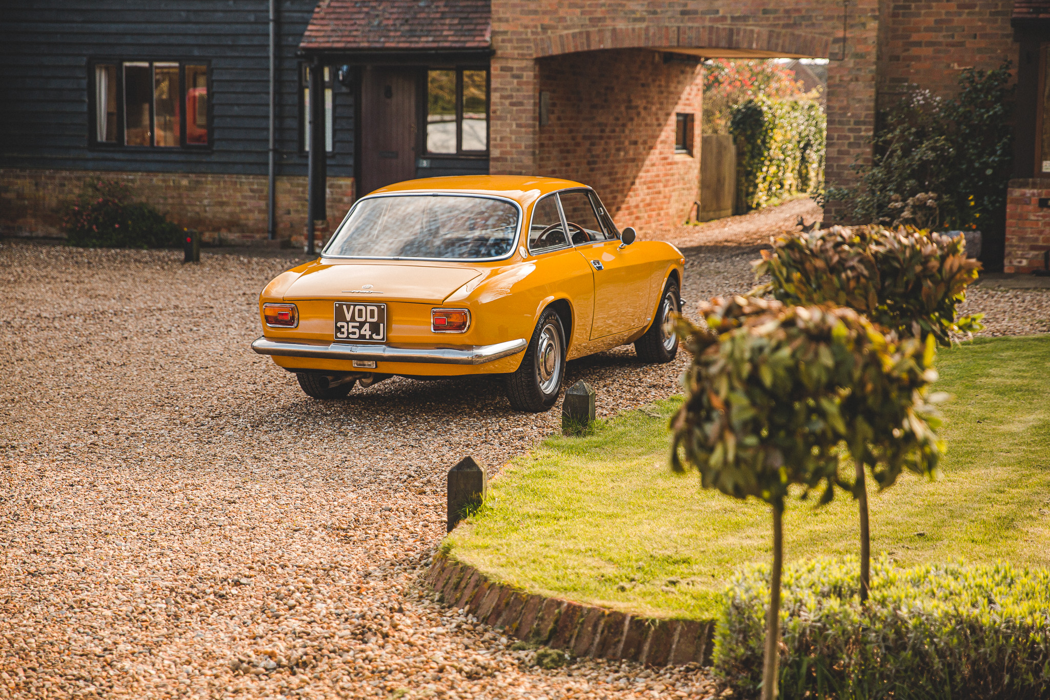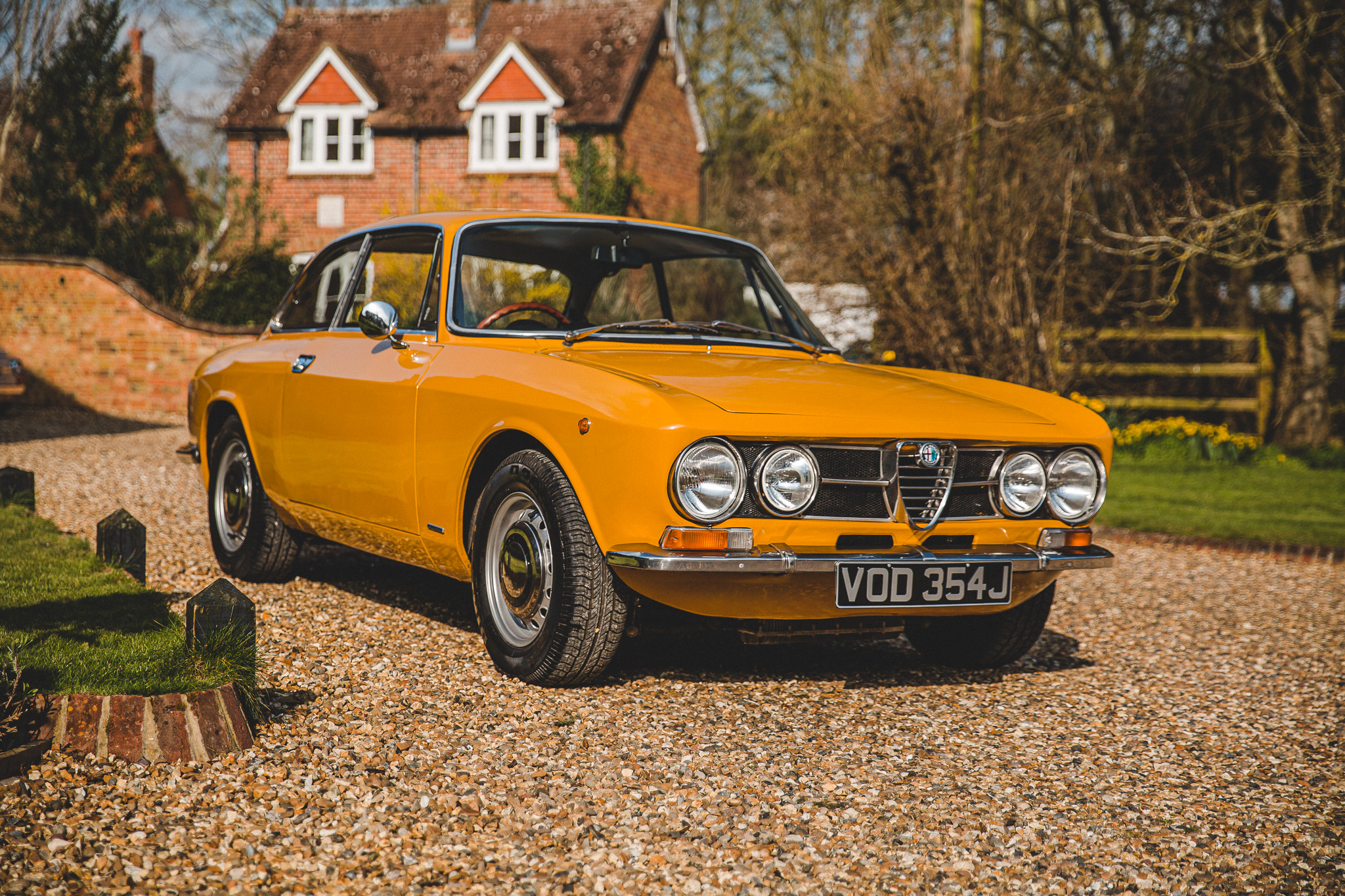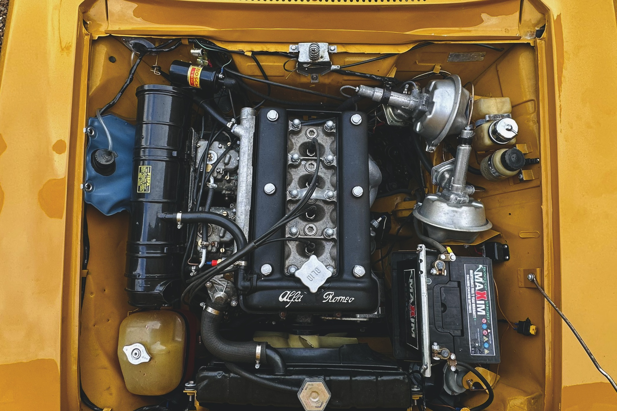 this wonderful Alfa is presented in Giallo Ochre (109) over Skai Intrecciato Nero (Yellow Ochre over Black Basketweave Vinyl)