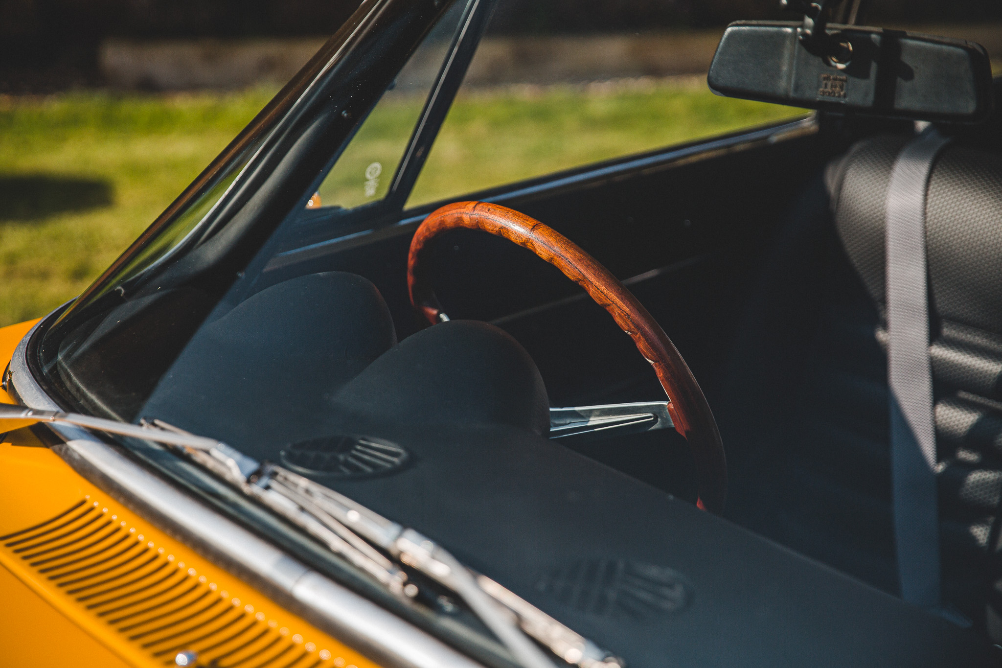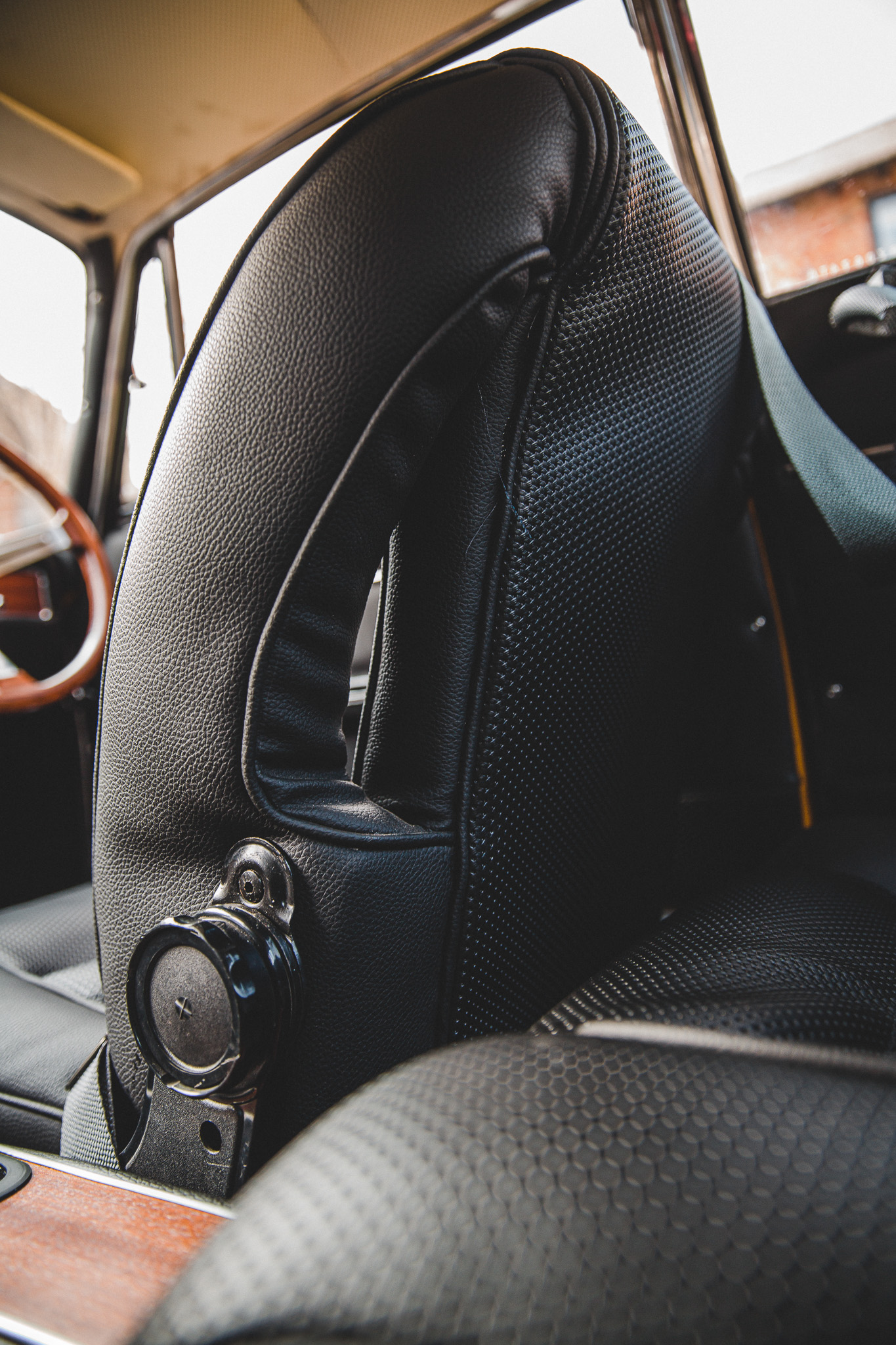 The interior has seen the addition of a full replacement set of wood veneer inlays and chrome surrounds and gaiters. A new set of correct static seatbelts supplied by Quickfit Safety Belt Service with silver contrast webbing and chrome buckles, and the entire interior is now presenting beautifully.